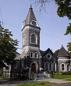 The building was designed by architect H. N. Black in the Gothic Revival and Romanesque Revival styles.[2] It has been listed on the National Register of Historic Places since October 5, 1978.[1]