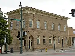significant for its architecture. It is an excellent intact example of the Late Victorian design with many elements of Romanesque Revival style.... The two-part corner commercial building is faced with rock-faced rhyolite stone that was quarried outside of Castle Rock. This building was the second home for the bank and represents economic shifts occurring in the community as the bank sought a more permanent home during a time of community growth and as the bank shifted from out of state "back East" investors to local ownership.[2]