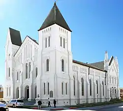 First Presbyterian Church is a historic church building at 1903 Church Street in Galveston, Texas. The Presbyterian congregation was organized in 1840 with the assistance of missionaries from the United States, and it met in a wooden church building from 1843 to 1872, the first church building in Galveston. The current Romanesque building was constructed in 1872 and is considered one of the best examples of Norman architecture in the region. It was designed by Nicholas J. Clayton, a prominent early Texas architect. The church was added to the National Register of Historic Places in 1979. Currently, the congregation is affiliated with the Presbyterian Church (U.S.A.), the Synod of the Sun, and of New Covenant Presbytery.[2]