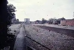 Fishponds station was just south of where Morrisons supermarket car park is today. The railway line was built in 1835 for transport of coal from Coalpit Heath to industry in the centre of Bristol. The station, originally named Fish Ponds, was opened in March 1866, and was renamed Stapleton on 1 April 1866.[1] It was part of the Bristol to Birmingham line of the Midland Railway. The station was renamed Fish Ponds on 1 January 1867, and Fishponds on 1 May 1939.[1] It had two platforms plus a shunting line constructed in 1905 for the Avonside Locomotive Works to move their newly built locomotives onto the main line.
