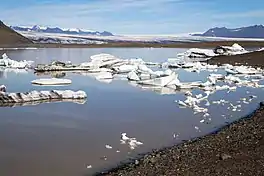 Fjallsárlón (Icelandic pronunciation: [ˈfjalsˌaurˌlouːn] ⓘ) is a glacier lake at the south end of the Icelandic glacier Vatnajökull. Fjallsjökull which is part of the bigger glacier reaches down to the water of the lake and some ice-bergs are drifting by on its surface.