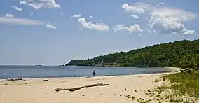 Flag Ponds Nature Park is a nature preserve located in Lusby, Maryland along the Chesapeake Bay in Calvert County, Maryland. It is operated by the Calvert County Department of Natural Resources. The park includes nature trails and a beach for swimmers. Fossil shark's teeth eroded from the Calvert Cliffs formation may be collected on the beach. The area included in the park was once a center for pound net fishing from the early 1900s through 1955. One fishing shanty remained until October 2012 when it burned down.[2] It has since been rebuilt.