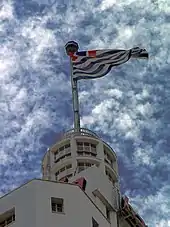 Ribeiro's design then came over the subsequent decades to be considered the "flag of São Paulo". It was used to decorate building facades or as a decorative object but without any official status.[1] It became a de facto symbol of the state of São Paulo after the 1932 Revolution in the early years of the Vargas Era in Brazil, during which President Getúlio Vargas had suspended the use of state symbols, including the flag of São Paulo. The flag finally achieved official status on November 27, 1946, under Decree-Law 16.349 of the new federal constitution, which gave the states the right to provincial symbols such as flags, colors, seals, coats of arms and logos.[3]