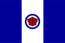 The flag of Toledo, Ohio, is the official flag of the city of Toledo, Ohio. The flag consists of a vertical blue, white, blue tricolor with Toledo's official seal in the center of the white part of the flag. The current flag was adopted in 1994 and was designed by former Mayor of Toledo, Carty Finkbeiner.[1] There is an on-going effort to change the flag to a design created by Toledo-based artist, Jacob Parr, currently being considered for official use by the Toledo City Council.