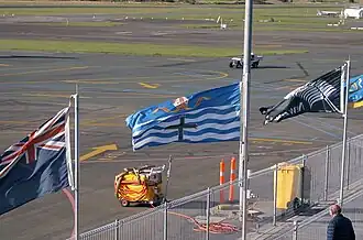 The flag of the City of Nelson represents Nelson, New Zealand.[1] The flag is flown from many public buildings and other landmarks in Nelson including Christ Church Cathedral. It is also intended for public use and is often seen flying from private residences in the city.[2]