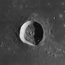 Flamsteed is a small lunar impact crater located on the Oceanus Procellarum, which is named after British astronomer John Flamsteed.[1] It lies almost due east of the dark-hued Grimaldi, and north-northwest of the flooded Letronne bay on the south edge of the mare.