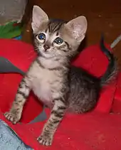The condition is often misdiagnosed as Pectus excavatum,[2] with which it has no direct connection, although FCKS kittens may also have PE. Although the condition is believed to be more prevalent in the Burmese breed it is found in every breed of cat, including non-pedigree domestic cats, and the apparent prevalence in the Burmese is most likely due to better communication between breeders and reporting of the condition, as well as the naturally more barrel-shaped chest of this particular genotype.[3] Since early reporting of the condition identified the Burmese as susceptible the Bengal breed, with a similar physiology, has emerged, and shows a similarly large number of FCKS kittens, however this may be due to specific interest in the condition among those working with the breeds. It is reported in all breeds and in domestic non-pedigree cats, both those kept as pets and those living as 'barn cats'. An article in a Swedish cat club newsletter about FCKS led to a spike in reporting of the condition in Ragdolls in Sweden.