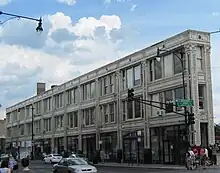 The Flat Iron Building is located in the Wicker Park district of West Town, Chicago, Illinois.[1] The building is located at the intersection of Milwaukee Avenue, North Avenue, and Damen Avenue. Since the 1980s, it has served as an artists colony, and features visual artists and musicians of all disciplines.