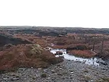 Since 2017, Pennine PeatLIFE has been actively restoring blanket bogs in Northern England, including Fleet Moss.[28] The programme has seen the installation of sediment traps and dams across 253 acres (102.5 ha) to prevent erosion and the run-off of acidic peaty water into streams and rivers.[29][30] Rewetting of the bog also helps to prevent flooding in downstream areas.[31] By the spring of 2019, more than 990 acres (400 ha) of peatland at Fleet Moss had been restored, with the expectation that 1,200 acres (500 ha) would be completed by 2022.[27]