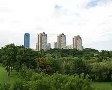 In 1958, following the trends of many other post-World War II cities, Toronto began to consider a large planned "apartment city" community for the 1950s population boom and influx of immigrants. Although there was immediate scepticism about the density of the development, the community was nevertheless built.[3] Occupancy of the new apartments began in 1961,[4] and the community was completed in the early 1970s. The community's developer was Olympia and York.