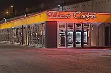 The Flex Café is a bar located right next to the Flex. It features couches and a small dancefloor which is hardly ever used. Sometimes there are DJs in the Flex Café, and there is mainly indie music playing. In spring and summer there are benches outside and sports events are shown on a large screen, however, bringing your own beverages is not permitted. Sparkling water is free in both Flex and Flex Café.