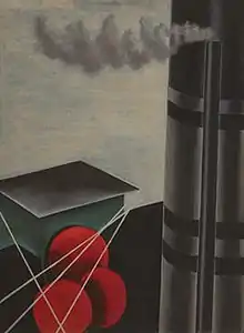 Early in her career, Crockett produced work that was somber and, while abstract, not entirely non-objective. An untitled painting of 1941 shows geometric objects in red, gray, and black colors along with what are clearly two smoke stacks, one emitting smoke or steam.[3] This work reminded a critic of paintings by the American surrealist, Kay Sage.[3]