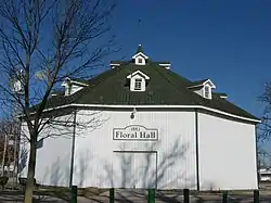Floral Hall, also known as The Round House, is a historic building located on the Jay County Fairgrounds in Wayne Township, Jay County, Indiana. It was built in 1891, and is a 2+1⁄2-story, octagonal frame building with vertical board siding with battens. Each side measures approximately 33 feet long.[2]: 2