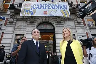 In the 2019–20 season, Real Madrid won their 34th La Liga title which was their fifth under Pérez and second under coach Zidane.[31] In the 2021–22 season, Real Madrid won their sixth La Liga and sixth Champions League title under Pérez, meaning he managed to equal the record of Santiago Bernabéu for the latter.[32]