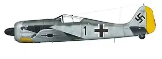 The Fw 190 also formed, along with the Bf 109, the core of the German fighter force that participated in Operation Bodenplatte. A total of 35 Fw 190 A-8s, 27 A-8/R2s, 5 F-8s and 50 D-9s were destroyed or lost over Allied lines on 1 January 1945.[17]
