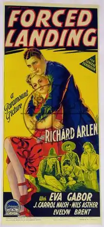 Forced Landing is a 1941 American action film directed by Gordon Wiles and distributed by Paramount Pictures. The film recounts the exploits of a pilot in Mosaque, an imaginary country in the midst of turmoil.[3] Forced Landing stars Richard Arlen, Eva Gabor, J. Carrol Naish, Nils Asther and Evelyn Brent.[4]