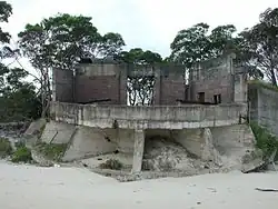 Although Moreton Island is primarily a tourist destination, it does have three small townships. Since closing, much of Fort Cowan Cowan has been removed, destroyed or has disappeared into the residential landscape of the Cowan township. In some cases, buildings from the complex have been converted for other uses such as holiday accommodation. Moreton Bay Boat Club (MBBC) has leased Lot 46 C9562 which comprises a number of interlinking concrete paths, the four magazine huts, the foundations of the kitchen and soldiers' mess, store hut and the concrete water tank. MBBC have converted the magazine huts and storage hut into accommodation blocks for use by club members. The two gun emplacements remain in situ on the beach although over the years the tide line has moved progressively closer to them. Their condition has deteriorated and both emplacements are listing dangerously on their foundations as the sand shifts from under them.[1]
