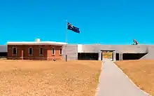 As part of South Australia's sesquicentenary, the South Australia Jubilee 150 board granted $250,000 for work on the fort, allowing construction of a visitor centre.[58] Queen Elizabeth II visited and inspected the site, and newly constructed visitor centre, for almost an hour on 13 March 1986. For the visit the historical association demonstrated firing of both the 64 and 2 pounder cannons.[28] The visitor centre was officially opened one month after this visit.[58] Governor Dame Roma Mitchell named the old road "Queen Elizabeth II Walk" in a March 1991 ceremony, commemorating the 5th anniversary of the queen's visit.[5] Considerable subsequent restoration work has been completed on the fort, including the barrack's interior. The portion of the muster ground that is not within the caravan park was returned to its original level in 1993.[28]