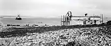 Its four buildings: the post manager's house, a power house, a warehouse, and a store, were built over 5 days in September 1937, following the 2 September arrival of the icebreaker SS Nascopie, which brought construction and food supplies.[7] Also arriving on the Nascopie were the post's first inhabitants: Lorenz Learmonth and other staff for the post, including two clerks, and three Inuit families from Cape Dorset who built their homes near the four post buildings.[6] Explorer Henry Larsen reached it in 1942, during his traversal of the Northwest Passage, the first successful navigation from west to east.