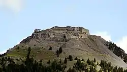 The Fort de l'Infernet is a fortification complex near Briançon in the French Alps. It was built as part of the Séré de Rivières system of fortifications in 1876–78 to defend France against invasion from Italy. It specifically overlooks the valley of the Durance behind and the Fort du Gondran, closer to Italy. Built at an elevation of 2,380 metres (7,810 ft), the fort was accessed by an aerial tramway, which connected to the older Fort du Randouillet at lower elevation. It was the last French fort to be built from cut stone masonry.