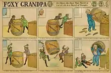 Foxy Grandpa was an American gag-a-day newspaper comic strip featuring an eponymous character, created by cartoonist Carl E. Schultze drawing under the name of "Bunny." The strip lasted from 1900 to circa 1918, and was at first hugely popular, with stage and silent film adaptations, as well as a party game license. Between 1901 and 1917, Foxy Grandpa was published in books — more than 30 volumes from four different publishers. It was revived as a typeset strip in the 1920s and 1930s.[2]