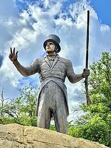 On April 18, 1838, François Chouteau died at age 41, variously accounted as either a heart attack or a stampeding horse,[2] in West Port (later annexed by Kansas City, Missouri). His funeral was held at the Old Cathedral of St. Louis one week later, on April 25.[8][9] His body is interred at Calvary Cemetery in St. Louis. His plot is marked by a tall obelisk, and includes his grave and those of his mother, Brigitte (Saucier) Chouteau, and three children who died young: Louis-Amédée, Louis-Sylvestre, and Benedict Chouteau.[10] François Chouteau is called the "Founder of Kansas City". During his lifetime, only the city of West Port, now part of Kansas City, had been developed. The Town of Kansas was chartered in 1850, and became part of Kansas City.
