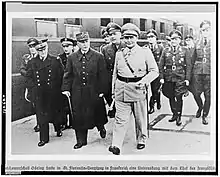After attending the Coronation of George VI, Darlan complained that protocol had left him, as a mere vice admiral, "behind a pillar and after the Chinese admiral".[4] In 1939 he was promoted to Amiral de la flotte, a rank created specifically to put him on equal terms with the First Sea Lord of the Royal Navy.[1]