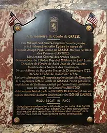 Admiral de Grasse died at Tilly (Yvelines) in 1788; his tomb is in the church of Saint-Roch in Paris.