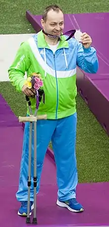 ![]() Tiršek at the 2012 Summer Paralympics Mixed R4-10m Air Rifle Standing-SH2 medal ceremony | |