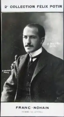 Maurice Étienne Legrand, who published under the pseudonym Franc-Nohain (French pronunciation: [fʁɑ̃.nɔ.ɛ̃]; 25 October 1872 – 18 October 1934), was a French librettist and poet. He is best known for his libretti for Maurice Ravel's opera L'heure espagnole and for numerous operettas by Claude Terrasse.