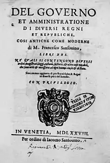 - Del governo dei regni e delle repubbliche così antiche come moderne (in Italian). Venice: Giovanni Antonio Bertano. 1578.