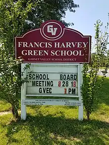 Bethel township named the first non-single room school in their township after Dr. Green. He was present at the groundbreaking ceremony and spoke of education in Bethel. Green died within a few months and was not able to see the completion and opening of the school. The dedication for Francis Harvey Green School took place on November 9, 1952.[10] The school was demolished in 2010.[11]