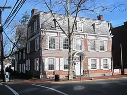 The Francis Hopkinson House is an historic house at 101 Farnsworth Street in Bordentown, Burlington County, New Jersey, United States. Built in 1750, it was the home of Founding Father Francis Hopkinson (1737-1791), the designer of the United States Flag and a signer of the United States Declaration of Independence.[3] He lived in this home with his wife Ann Borden (1747-1827)[4] from 1774 until Hopkinson's death in 1791.[5] Ann Borden was the granddaughter of Joseph Borden, the founder of Bordentown, New Jersey.[6] The house was designated a National Historic Landmark in 1971.[2]