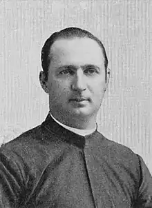 Francis J. Finn was born on October 4, 1859, in St. Louis, Missouri. His parents, John Finn and Mary Whyte Finn, were both Irish immigrants.[2] He attended parochial schools. As a boy, Francis was deeply impressed with Cardinal Wiseman's famous novel of the early Christian martyrs, Fabiola. Eleven-year-old Francis was a voracious reader; he read the works of Charles Dickens, devouring Nicholas Nickleby and The Pickwick Papers. From his First Communion at age 12, Francis began to desire to become a Jesuit priest. Fr. Charles Coppens urged Francis to apply himself to his Latin, to improve it by using an all-Latin prayerbook, and to read good Catholic books. Fr. Finn credited his vocation to this advice and to his membership in the Sodality of Our Lady.[3]