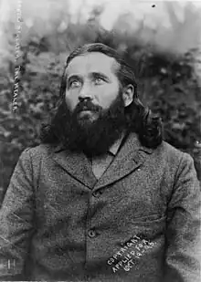 Schlatter was born in the village of Ebersheim, Bas-Rhin, near Sélestat, in Alsace, France, on April 29, 1856. In 1884 he emigrated to the United States, where he worked at his trade in various cities, arriving in Denver, Colorado, in 1892. There, a few months later, he experienced a vision at his cobbler's bench in which he heard the voice of the Father commanding him to sell his business, give the money to the poor, and devote his life to healing the sick. He then undertook a two-year, 3,000-mile walking pilgrimage around the American West which took him across eastern Colorado, Kansas, and Oklahoma, and then to Hot Springs, Arkansas, where he was arrested and jailed for vagrancy. In early 1894 he escaped and headed west, walking across Texas, New Mexico, and Arizona and into southern California, where he began his first efforts at healing with the indigenous people of the San Jacinto Valley. After two months, he again took up his pilgrimage and traveled east across the Mohave Desert, living on nothing but flour and water. In July 1895 he emerged as a Christlike healer in the Rio Grande villages south of Albuquerque. There, while treating hundreds of sick, suffering, and disabled people who flocked to Albuquerque's Old Town, he became famous. Crowds gathered about him daily, hoping to be cured of their diseases simply by clasping his hands. The following month he returned to Denver, but did not resume his healings until mid-September. During the next few weeks, his ministry drew tens of thousands of pilgrims to a small home in North Denver. Schlatter is said to have refused all rewards for his services. His manner of living was of the simplest, and he taught no new doctrine. He said only that he obeyed a power which he called Father, and from this power he received his healing virtue.[1]