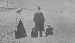 Family life of Francisco Melgar remains rather obscure; neither he in his memoirs nor any of the scholars offers any meaningful insight into his personal matters. Next to nothing is known about his wife, Jeanne Trampus,[22] born probably in Trieste[23] and married in Paris in 1906. According to Melgar[24] she was mentally ill and developed maniac behavior;[25] She deceased before her husband; their daughter, Carmen Melgar Trampus (1907-1990), became a nun.[26] Their son, Francisco Carlos Melgar Trampus,[27] as a youngster serving as secretary to the Carlist claimant Don Jaime,[28] engaged in Madrid Carlist structures of the 1920s;[29] in the 1930s he was the Paris correspondent of Estampa and As,[30] in the 1940s active in the Francoist press; in the 1950s he acknowledged Don Juan as legitimate Carlist heir and entered his Consejo Privado.[31] Author of a few books on Carlism,[32] in the 1960s he wrote as a columnist to ABC.[33] His son, Jaime Melgar Botassi, worked as translator.[34] Currently the condado rests with Francisco's great-grandson, Francisco Melgar y Gómez de Olea Botassi y Naveda.[35]