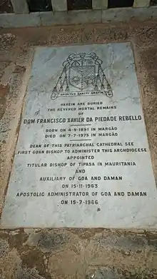 Dom Bishop Francisco Xavier da Piedade Rebelo (September 4, 1891 – July 7, 1975) was a prelate of Goan origin, the first Goan to head the Archdiocese of Goa and Daman, as apostolic administrator.