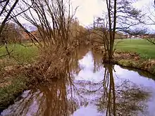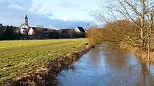 The Franconian Rezat (German: Fränkische Rezat, pronounced [ˈfʁɛŋkɪʃə ˈʁɛtsat]) is a 77-kilometre-long (48 mi) river in southern Germany.[4] It is the western, left source river of the Rednitz.[5] It rises in the Franconian Heights near Oberdachstetten. It flows generally east through the towns Lehrberg, Ansbach, Windsbach and Spalt. Together with the Swabian Rezat (Schwäbische Rezat), it forms the Rednitz in Georgensgmünd.