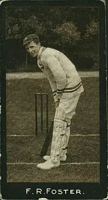 Frank Rowbotham Foster (31 January 1889 – 3 May 1958)[1] was an English amateur cricketer who played for Warwickshire County Cricket Club from 1908 to 1914, and in Test cricket for England in 1911 and 1912. He was born in Birmingham, educated at Solihull School and died in Northampton. His career was cut short after a motor-cycle accident during World War I.[2]