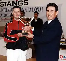 Frank Massar is a British martial artist. He currently holds the rank of 9th Dan in Taekwondo[1][2] and is the founder of Massar Taekwondo Association.[3] He has achieved six “Combat Hall of Fame Awards”,[4] and holds several national and international competition titles. He is also featured in many magazines[5][6] and books.[7] He studied under Won Kuk Lee[8] and also under Pak Hae Man of Chung Do Kwan.[9] Massar received his Dan qualification directly from Kukkiwon (WTF) and graduated from Chung Do Kwan.[10] Massar's precept is to share his knowledge of martial arts with the community at large,[11] 'Passing on the Gift'[12] and keeps in constant contact with various educational associations to achieve this end.[13]