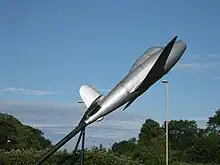 When Rolls-Royce became involved, Ray Dorey, the manager of the company's Flight Centre at Hucknall Airfield on the north side of Nottingham, had a Whittle W.2B engine installed in the rear of a Vickers Wellington bomber.[73][74] [75] The installation was done by Vickers at Weybridge.[76]