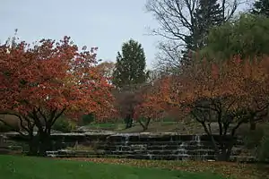 The Franklin Park Cascades is a water feature of ponds and waterfalls, constructed in 1991 for Ameriflora '92. The system was renovated in the mid-2010s for about $500,000, though a $2.2 million project in 2019 fully fixed the cascades and made the surrounding area resemble a more natural forest setting.[3]