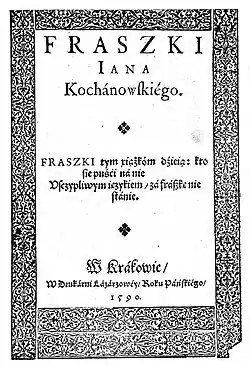 ![]() Title page of Fraszki by Jan Kochanowski, 1590 edition | |