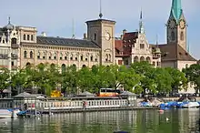 Frauenbad Stadthausquai is a public bath in Zürich, Switzerland, forming part of the historical Seeuferanlage promenades that were built between 1881 and 1887.[1] Situated at the Stadthausquai by the Bürkliplatz plaza, the bath was built for, and is still exclusively used by women (Frauenbad means "bath for women").