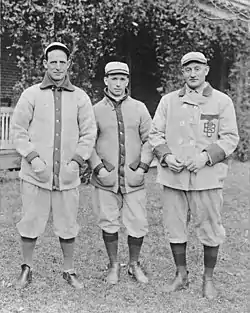 Clarke (left) with Pirates teammates Tommy Leach and Honus Wagner