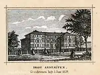 Helbredelsesanstalten for idiotiske Børn, also referred to as Idiotanstalten, was founded in 1855 and originally based in the nadkacent property Bakkehuset. Its new building was built 1859–1860 to design by Ferdinand Meldahl.[1][2]
