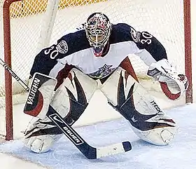 Fredrik Jan Elis Norrena[1] (born November 29, 1973) is a Finnish former professional ice hockey goaltender. He played 100 games in the National Hockey League with the Columbus Blue Jackets between 2006 and 2008. The rest of his career, which lasted from 1992 to 2014, was mainly spent in Europe, where he mainly played in the Finnish SM-liiga and Swedish Elitserien. Internationally Norrena played for the Finnish national team at five World Championships, winning one silver and one bronze medal, and the 2006 Winter Olympics, winning a silver medal.
