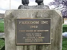 - ↑ "Freedom, INC official history by Jackson County Democratic Committee Jackson County Democratic Committee". Archived from the original on 2009-12-12. Retrieved 2015-04-01.