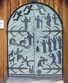 The origins of the modern Kingdom of Norway can be traced to the kingdoms established by Vikings during the Middle Ages. During this period, Norwegian kings such as Olaf II of Norway converted to Christianity, and propagated it within their kingdoms to reify their authority.[2] Accounts from this time period include graphic descriptions of gruesome torture perpetrated against pagans who refused to convert.[3] The Catholic Church in Norway was replaced by Evangelical Lutheranism during the Reformation in the 16th century, and non-Protestants were persecuted.[4] From the 16th to 19th centuries, Norway (under either a Danish or Swedish crown) forced the Sámi people of northeastern Scandinavia to convert to Christianity, suppressing and eventually all but eradicating their indigenous religion.[5] Jews were at times tolerated in Norway, but in 1814 a new constitution banned Jews from the country––this provision was reversed in 1851, and by the end of the 19th century Norway would be home to a few thousand Jews.[6] This population was devastated in the 1940s during the German occupation of Norway as part of World War II and the Holocaust.[7] Toward the end of the 20th century and in the 21st, the Norwegian government has adopted some constitutional reforms to recognize the traditions of the Sámi people,[8] to establish a separation between church and state,[9] and to provide financial restitution for the Jewish community,[10] but it has also imposed religious clothing bans targeting Muslim women.[11]