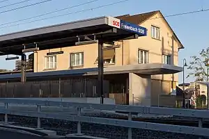 Freienbach SOB railway station is a railway station in the Swiss canton of Schwyz and municipality of Freienbach. The station is located on the Pfäffikon SZ–Arth-Goldau railway line, owned by the Südostbahn (SOB). It is an intermediate stop on Zurich S-Bahn service S40, from Einsiedeln to Rapperswil.[1][2][3]